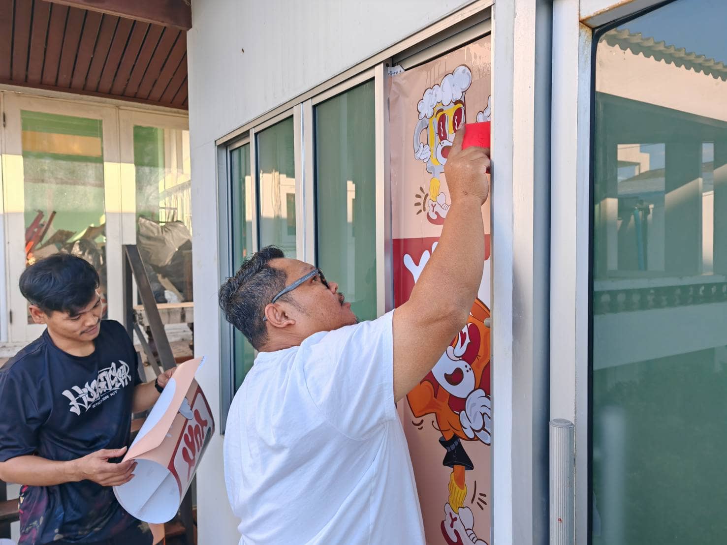 - กระจกพ่นทราย/กัดกระจก ถ้าคิดจะนำกระจกมาพ่นทรายหรือการกัดกระจกเพื่อสร้างลวดลายสวยๆ ต้องมั่นใจแล้วว่า ลวดลายที่เลือกมานั้น เข้ากับบรรยากาศภายในร้านโดยสมบูรณ์แบบ เพราะถ้าพ่นทรายหรือกัดกระจกไปแล้ว ก็ไม่สามารถเปลี่ยนลวดลายใดๆ ได้อีก นอกจากรื้อกระจกบานนั้นทิ้ง ในกรณี ค่อนข้างมั่นใจว่า ลวดลายที่เลือกมานั้น เข้ากับบรรยากาศภายในร้าน ก็ไม่มีความจำเป็นต้องให้ รับติดสติ๊กเกอร์ติดกระจกลำพูน เพราะทางร้านเลือกตกแต่งร้านด้วยการพ่นทรายไปแล้ว ก็ไม่ควรตกแต่งกระจกซ้ำซ้อน ช่างติดสติ๊กเกอร์ติดผนัง ควรนำสติ๊กเกอร์มาติดยังตรงบริเวณอื่นๆ ถ้าเจ้าของสถานประกอบการอนุญาติ และคำถามที่ว่า กระจกฝ้าควรติดสติ๊กเกอร์ไหม กรณีจะให้ ร้านติดสติ๊กเกอร์ฝ้า ถ้ากระจกฝ้าที่ว่า มีความจำเป็นต้องพิมพ์ลวดลายสวยๆลงไป ก็ให้ดำเนินการติดกระจกฝ้าได้